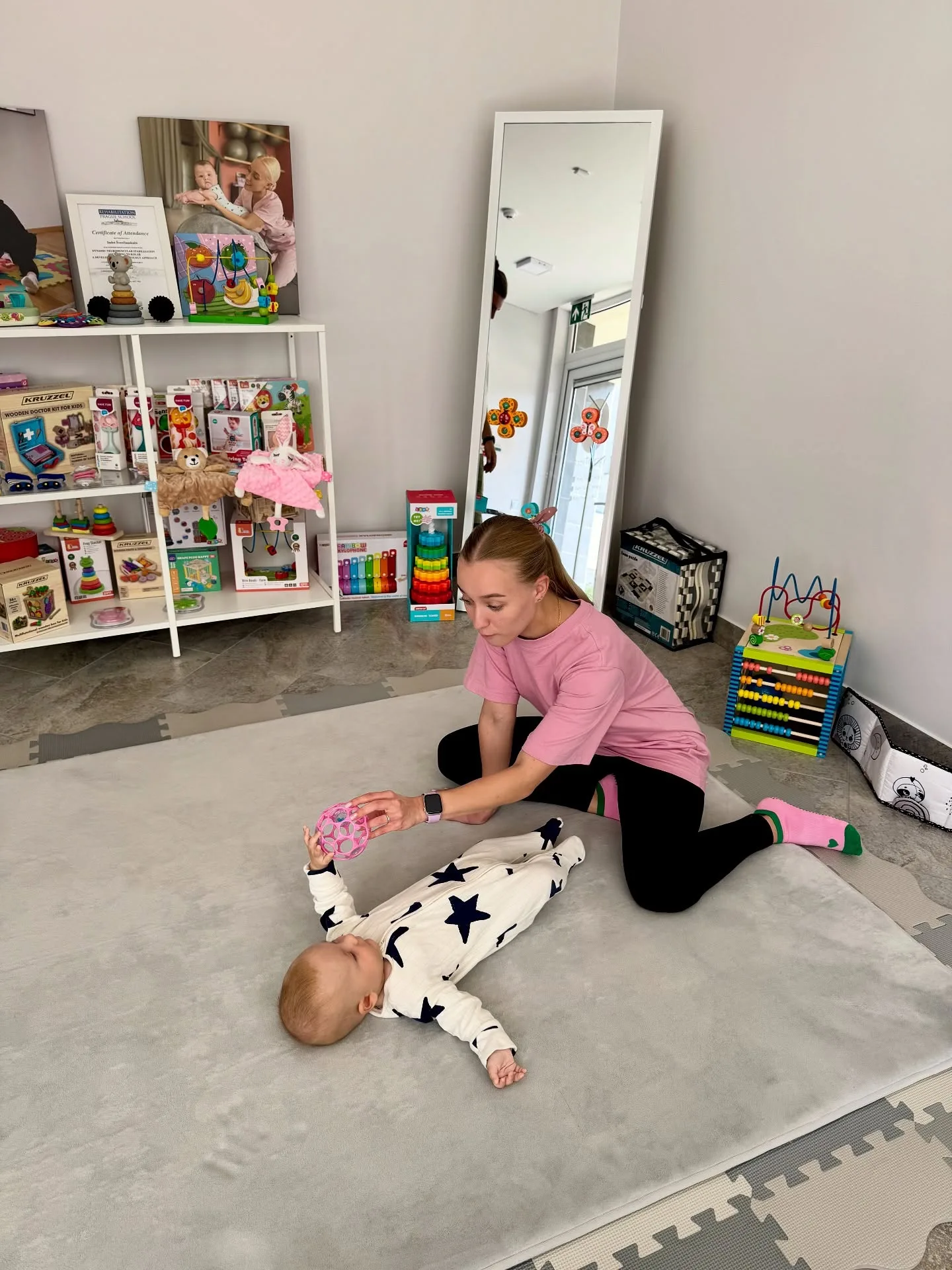 Lavinamieji žaislai yra tik viena kūdikio vystymosi dalis – ne mažiau svarbu ir tinkama fizinė veikla. Profesionalus kineziterapeutas gali padėti įvertinti vaiko raidą, pasiūlyti tinkamus pratimus ir padėti tėvams suprasti, kaip skatinti mažylio motorinį vystymąsi. Reguliari mankšta padeda stiprinti raumenis, gerinti laikyseną ir suteikia kūdikiui daugiau pasitikėjimo savimi judant.